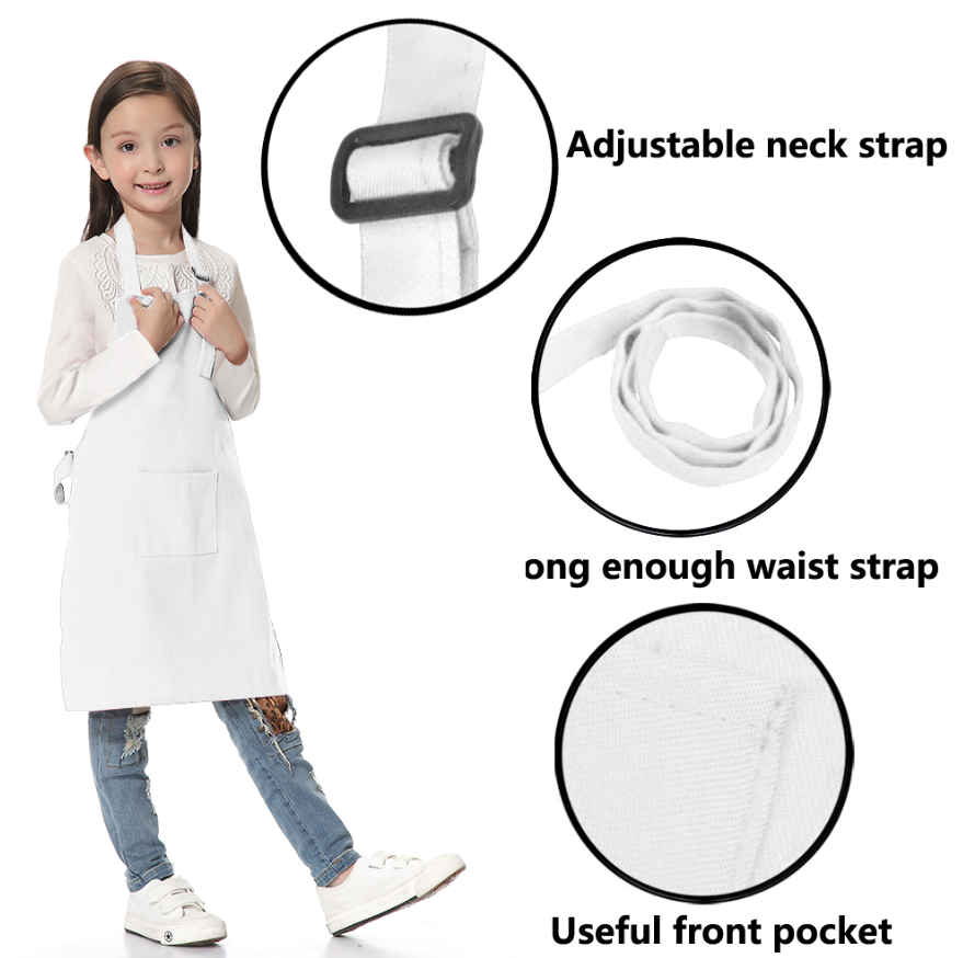 Youth Apron, Cotton Canvas Adjustable Chef Cooking Apron with Pockets